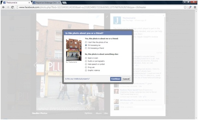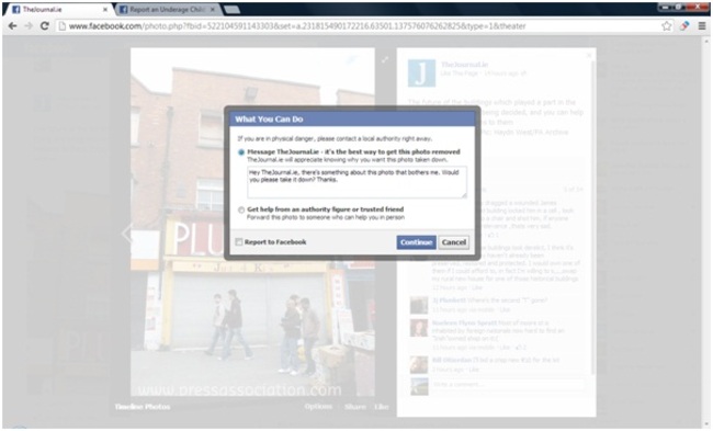 Social reporting on Facebook is a way for users to quickly ask for help from someone they trust. If your teenager sees a post or photograph on Facebook that bothers them, or which might be harassing them or someone they know, there are a number of possible useful actions they can take. They have the option of reporting photos directly back to the person who uploaded it, which can be useful if something was put up with no harm or embarrassment intended.