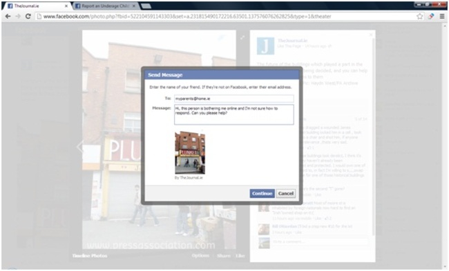 For more concerning posts, an option is available to report directly to Facebook. Importantly, an option is also available to send a copy of the post to an adult they trust. This can be very useful for teens, as many cases of bullying can be very subtle so the option of sending a copy to someone you trust who can help is very positive. The person they ask for help does not need to be on Facebook – all they need is an email address.