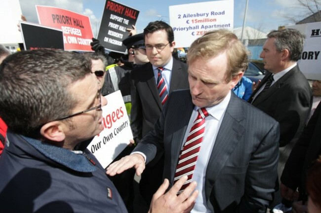 (Taoiseach Enda Kenny speaks to former Priory Hall resident Darren Kelly last month. Photo: Niall Carson/PA Wire)