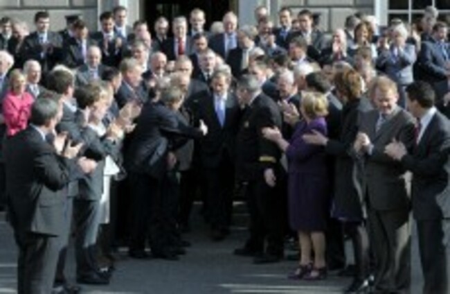 Fine Gael TDs and supporters congratulate Enda Kenny after the party entered government last year Sasko Lazarov/Photocall Ireland