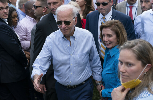 United States President Joe Biden and Speaker of the United States House of Representatives Nancy Pelosi (Democrat of California) talk during the Congressional Picnic at the White House in Washington, DC Tuesday, July 12, 2022. DPA/PA Images