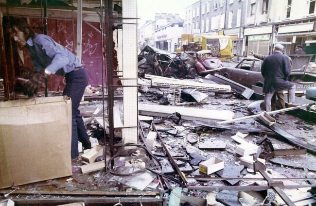 Clearing up in Talbot Street where the explosion took place on May 17, 1974. Alamy Stock Photo