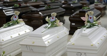 Teddy bears and flowers were placed on the coffins of children who perished in the Lampedusa tragedy, October 2013. Luca Bruno/AP/Press Association Images