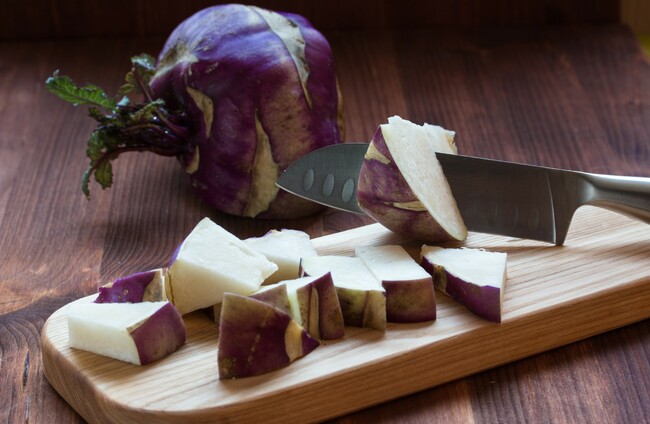 Kohlrabi is becoming a popular veg and it's tasty either cooked or raw