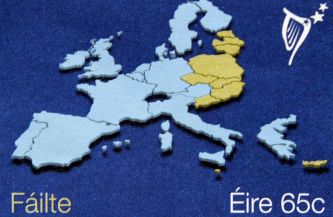 A commemorative stamp issued by Ireland's national postal service, to mark the EU enlargement as the 25 heads of state met in Dublin's Farmleigh House. 2004 PA