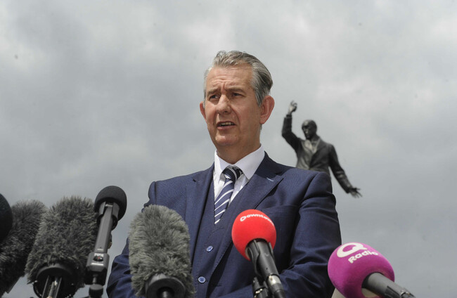 DUP Leader Edwin Poots speaks to the media, Belfast. PA