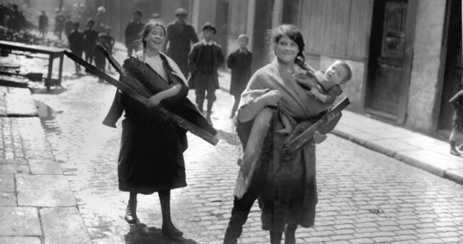 Children carry firewood from the rubble of Sackville Street, now O'Connell Street in the immediate aftermath of the Rising PA Archive/Press Association Images
