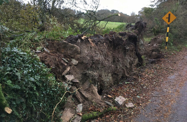 fall1 The uprooted trees have taken away the road boundary - but Áine is grateful no-one was hurt there. Áine Bonner Áine Bonner