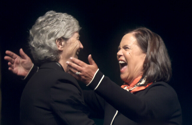 Sinn Féin leader Mary Lou McDonald hugging Catherine Connolly. Leah Farrell/© RollingNews.ie
