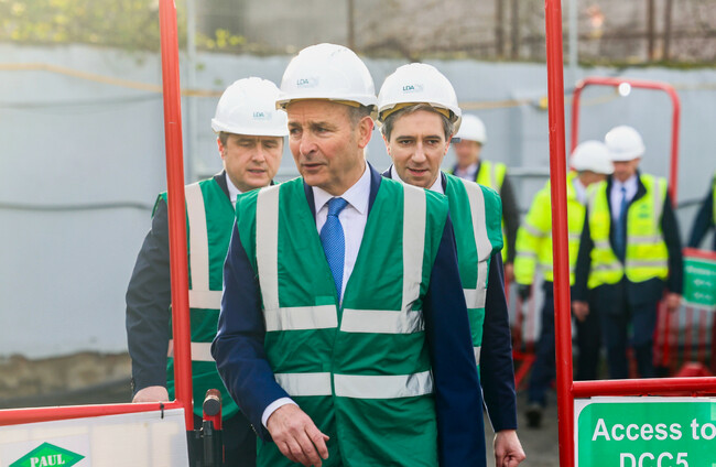 Taoiseach Micheál Martin, Tánaiste Simon Harris, and Minister for Housing James Browne launched the government's new housing plan earlier this month. Leah Farrell/© RollingNews.ie