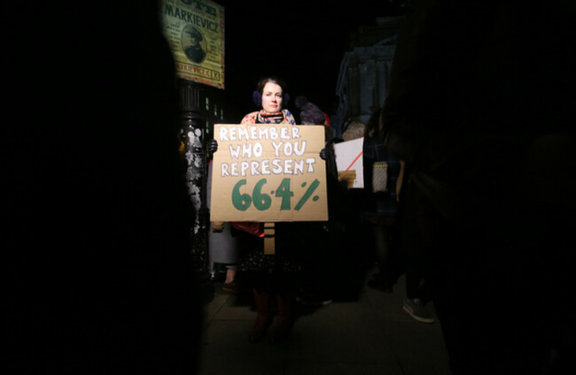 29/11/2018. Kate O’Hara protests for Free Safe Legal Abortion Legislation outside Leinster House Sam Boal/Rolling News