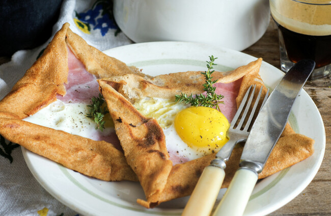 There are three types of pancakes offered in France, and recipes have been passed on from generation to generation. Our most famous one in Brittany, where I am from, is the buckwheat galette. A savoury crêpe made of buckwheat flour cooked on a special cooker called “Krampouz” and filled with local delicacies which never fail to amaze me.