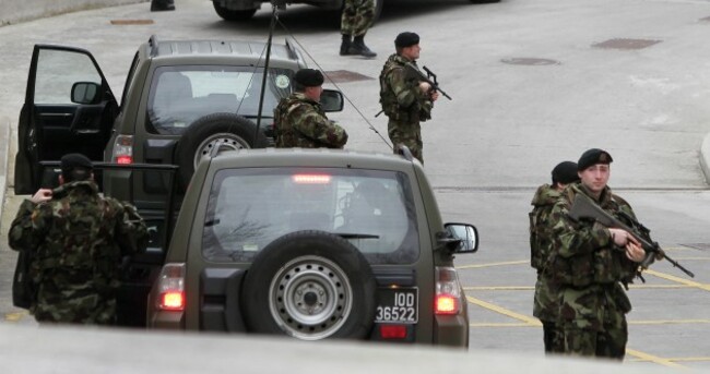 A heavy security presence was seen outside the Special Criminal Court in Dublin for the arrival of Wayne Dundon and associate Nathan Killeen in 2013. Niall Carson