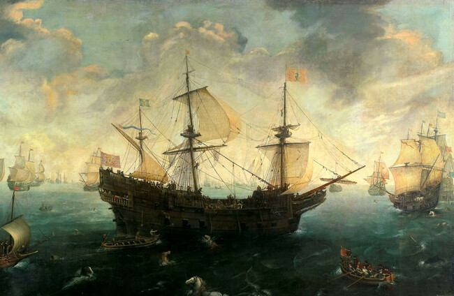 The Armada sails along the English coast. Rijksmuseum Amsterdam