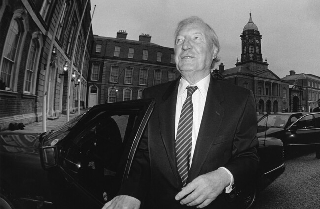 Charles Haughey arrives at Dublin Castle for the Beef Tribunal. Photocall Ireland.