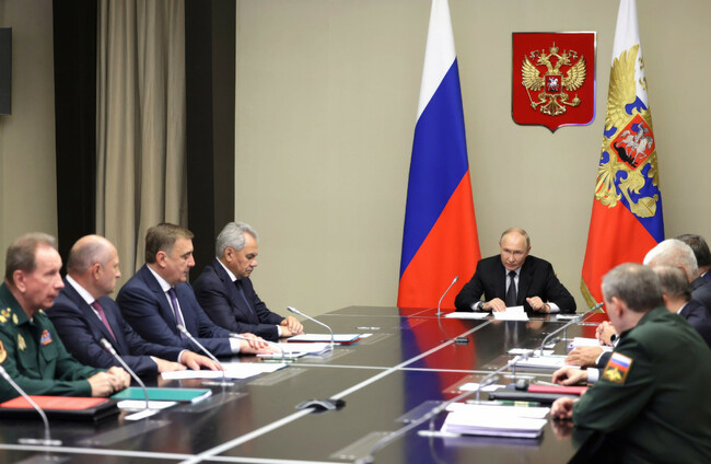 Novo-Ogaryovo, Russia. 12th Aug, 2024. Putin chairs a meeting of government officials to discuss the Ukrainian military incursion in the Belgorod region at the presidential residence, August 12. Alamy Stock Photo