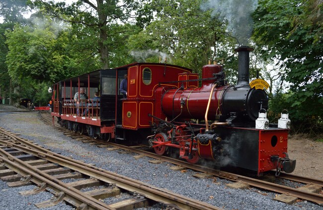 The engine we run, called No. 2, was built in Kilmarnock, Scotland, in 1949 and spent its working life on a Bord na Móna bog railway just outside Portlaoise. She (locomotives are always a she) now has a more leisurely life hauling two small coaches on a kilometre of track laid through the woods on the grounds of Stradbally Manor. Most people go to Stradbally for Electric Picnic, but we go there to keep a unique piece of Irish history alive.