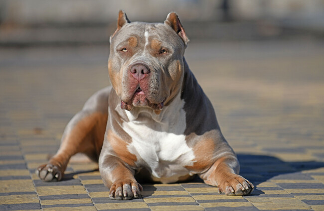 An American bully XL, known as an XL bully, is the largest of the American bully types. They are not a registered breed with the Kennel Club in Ireland or the UK but are a breed type that has been bred from several different dog breeds. They are a very large dog weighing upwards of 57 kg and have a muscular appearance. They are often overly bred to create an abnormal shape and structure which can be detrimental to the dogs health.
