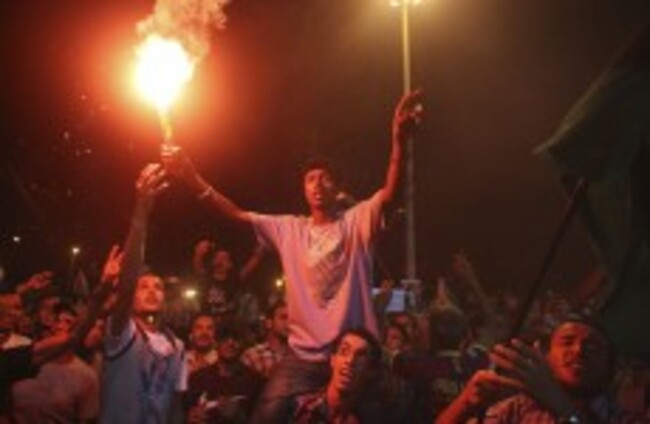 People in Benghazi celebrate news of uprisings in Tripoli against Muammar Gaddafi's regime. Alexandre Meneghini/AP