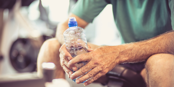 7. You've just finished a really tough workout at the gym and your water bottle has long since been drained. What do you do with it?