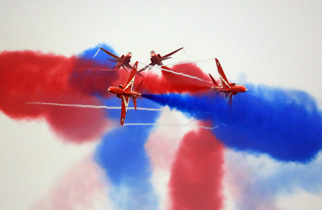 The Red Arrows, Hawk fast jets flown by experienced military pilots, are known around the world for their daring stunts.