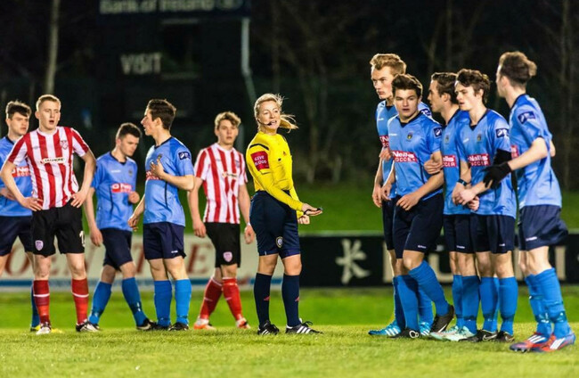 Paula Brady referees an underage match between UCD and Derry City Paula Brady