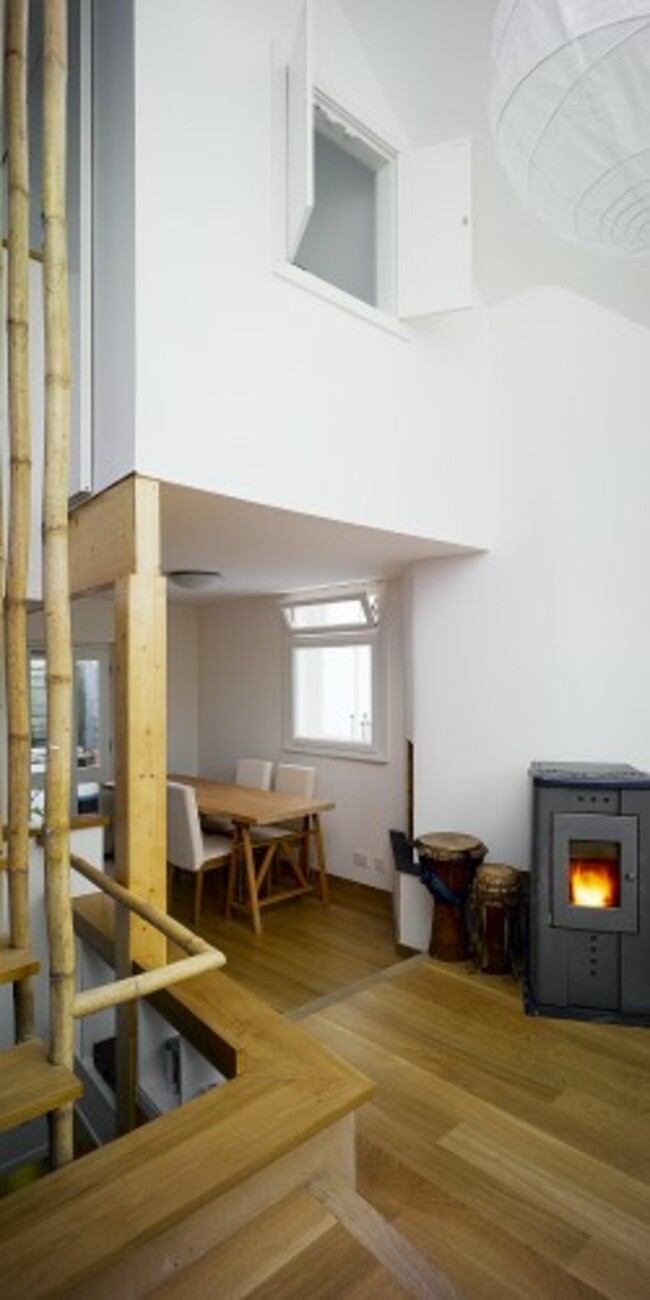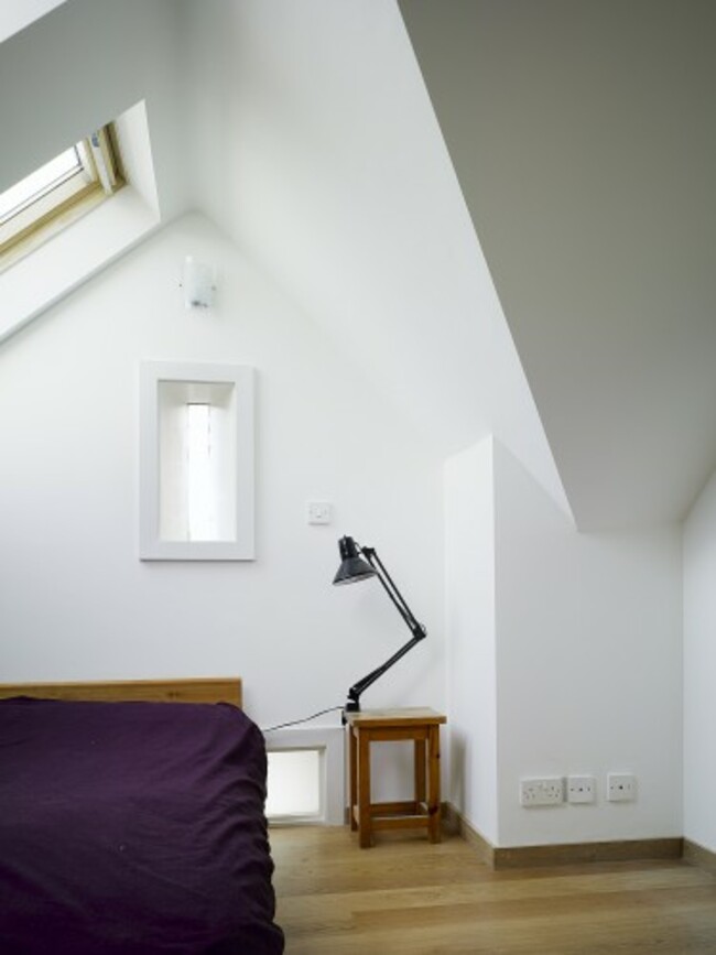 Take one end-of-terrace house in Dublin’s Liberties area, with an historical and partially protected external fabric and open it up entirely by removing internal non-structural walls, and adding a third storey (via a partial attic conversion) to create another bedroom and a living room below which now has a 5m ceiling and is lit on five sides – as sky lights were added also. Light fantastic.