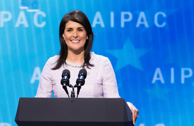 Nikki Haley speaking in 2018. Alamy Stock Photo