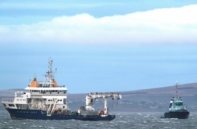 The Granuaile (left) alongside the tug Ocean Challenger during an earlier search. PA Wire/PA Images