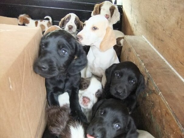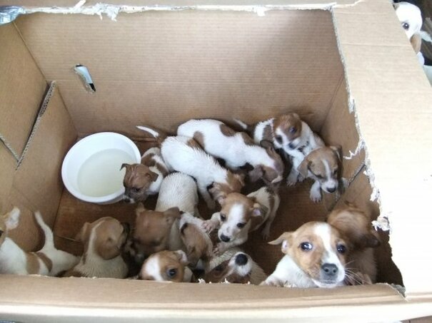 Twenty-five Jack Russells and a number of cocker spaniels, springer spaniels, terriers, beagles and labradors were discovered by Gardaí after they stopped two cars in Coolock yesterday. It is believed the dogs were being trafficked from puppy farms within Ireland to the UK.