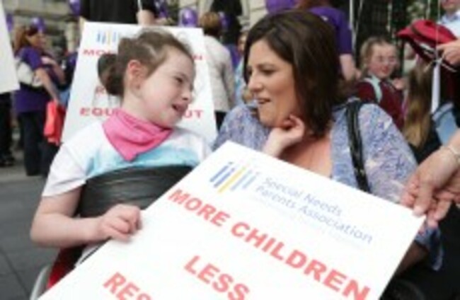 Lorraine Dempsey and her daughter Rianna (10) from Wicklow protest outside Leinster House last June. Laura Hutton/Photocall Ireland