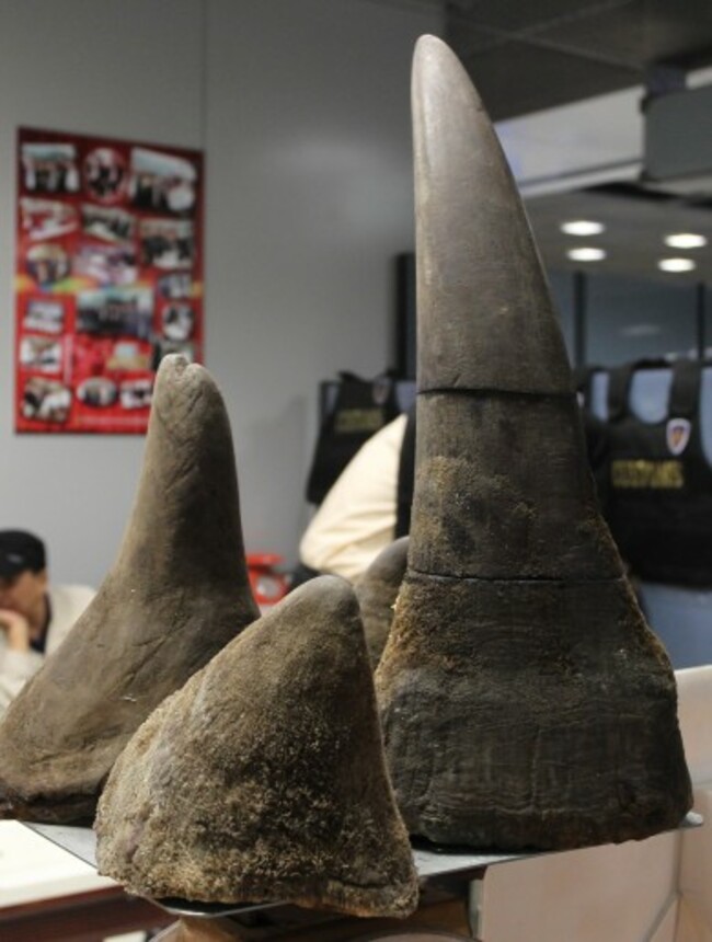Rhino horns like these ones being smuggled in Thailand in January have been stolen from National Museum Archives. AP Phoro/Apichart Weerawong/PA Images