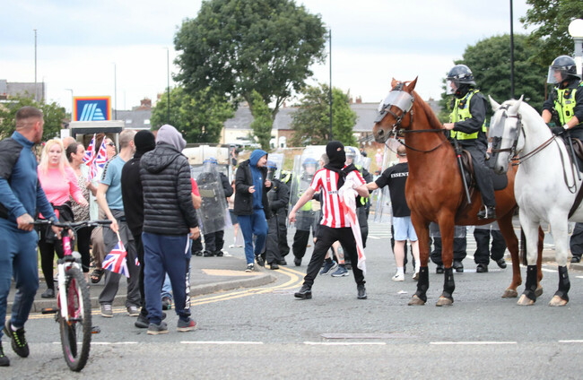 On Thursday, in Hartlepool, about 40km south of Sunderland, seven men were charged after violent disorder broke out.