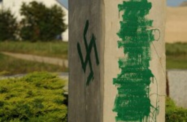 A Nazi swastika is seen in Jedwabne, Poland, on a monument dedicated to Jews. Michal Kosc via Press Association Images