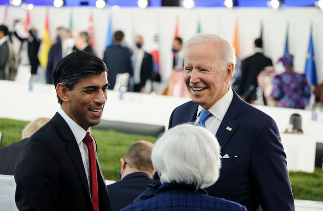 Joe Biden and Rishi Sunak at the 2021 G20 Ialia Summit in Rome. Alamy Stock Photo