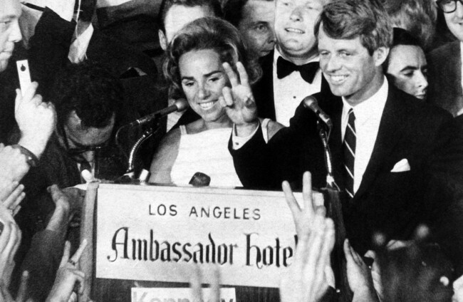 The brother of John F Kennedy was shot by Sirhan Sirhan moments after he claimed victory in California.