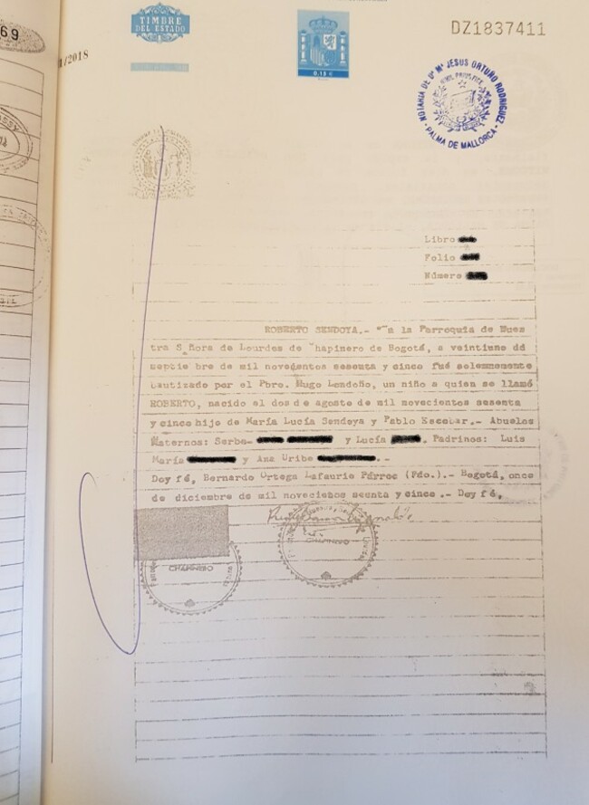 Birth/baptism certificate for Roberto Sendoya Escobar. Ad Lib Publishers Ad Lib Publishers