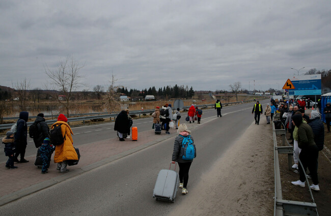 Ukrainian refugees arrive in Poland after crossing the border crossing from Ukraine to Poland in Hrebenne Alamy Stock Photo