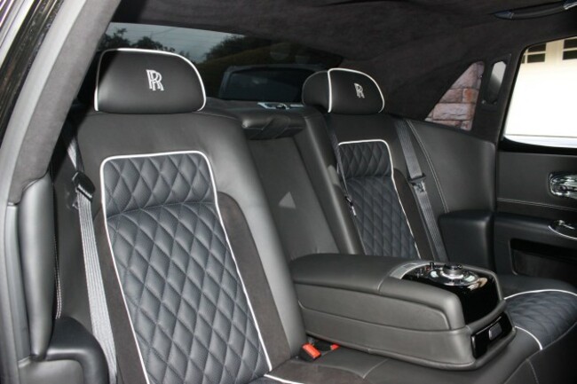 Inside, the sumptuous cabin is full of soft black leather, fine wood trimming and metal finishes. The five seats are covered in quilted black leather with Alcantara headlining, seashell piping and embossed Rolls-Royce headrests.