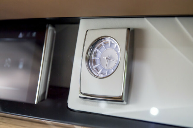 8. The Phantom VIII features a bespoke analogue clock with a backlit face with crystal effect details and counterweighted hands. It is finished to match the material selected for the interior. As the old David Ogilvy advertisement goes: “at 60 miles an hour, the loudest noise in the new Rolls-Royce comes from the electric clock”.