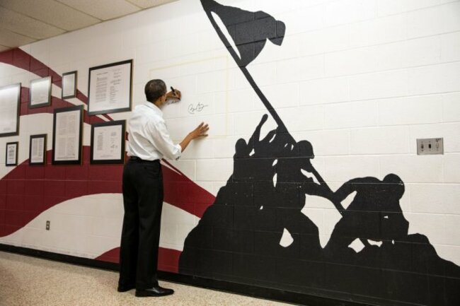 Included is this one of Obama signing the Wall of Freedom after an event at Mentor High School in Mentor, Ohio on 3 November: