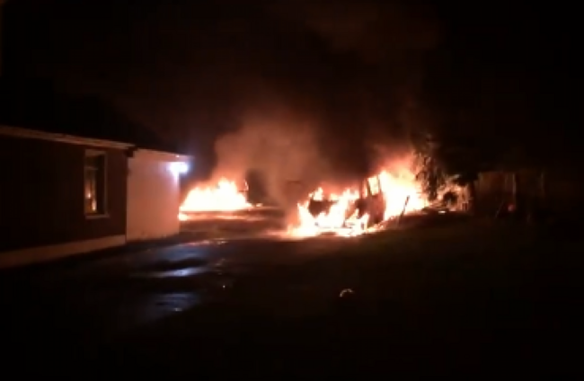 A number of vehicles were set alight during the incident and three of those attacked required hospital treatment.