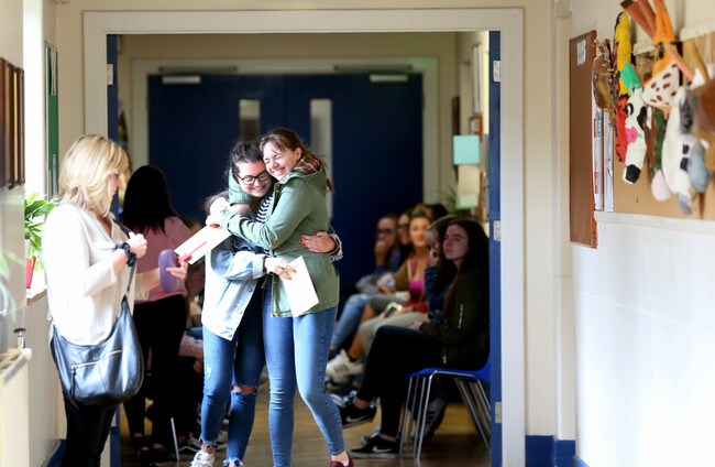 Students in Maryfield College receiving their Leaving Cert results. Sam Boal/RollingNews.ie