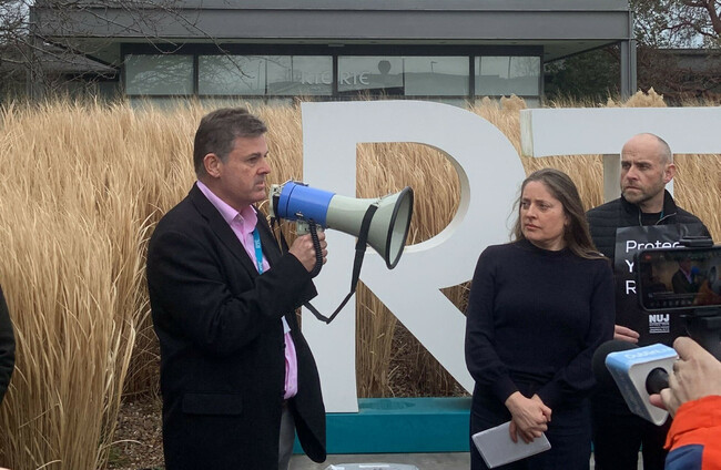 Bakhurst takes to loudhailer at RTÉ staff rally, says it's been 'horrendous period' for workers
