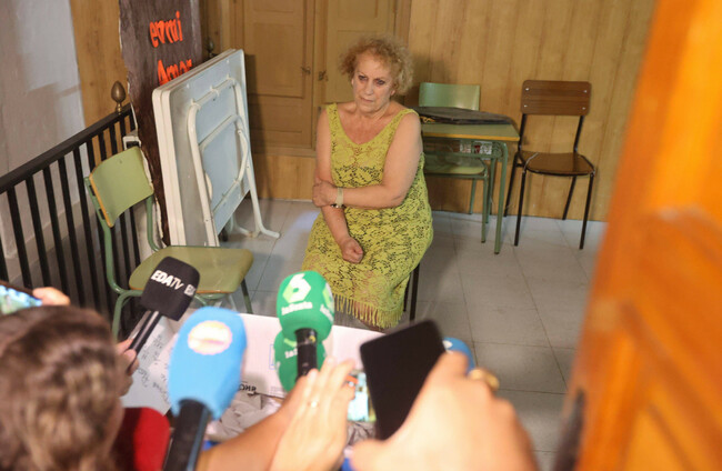 Angeles Bejar questioned by reporters in the Divina Pastora church. Alamy Stock Photo