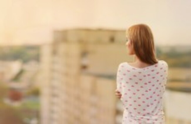 woman on edge of building via Shutterstock