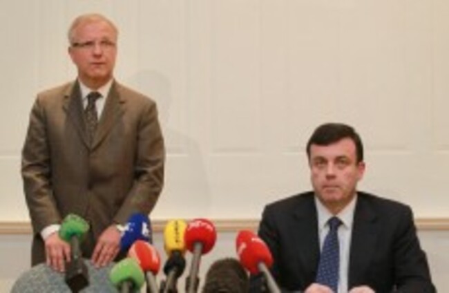 Minister for Finance Brian Lenihan holds a joint press conference with EU Commissioner Olli Rehn at the Department of Finance in Dublin.