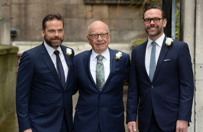 Rupert Murdoch pictured with sons Lachlan (left) and James (right)