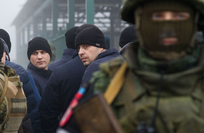 Prisoners of war (POW) from the self-proclaimed Donetsk and Lugansk People's Republics during an exchange of captives Alamy Stock Photo