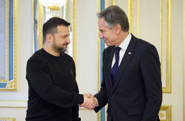 Ukraine's President Volodymyr Zelenskyy, left, greets US Secretary of State Antony Blinken Alamy Stock Photo
